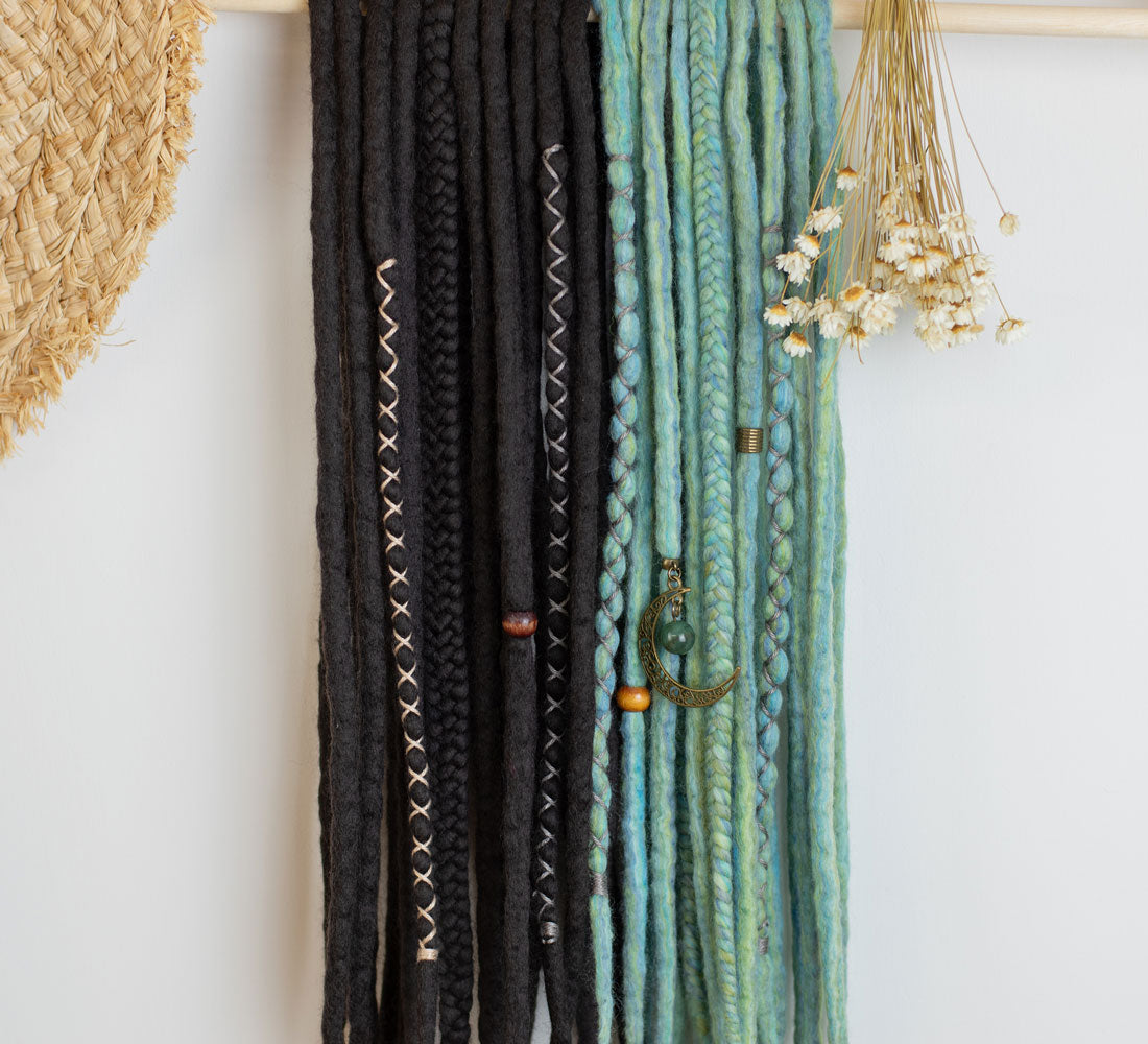 Wool dreads are light, incredibly soft and comfortable to wear. You can have any color hair you imagine without having to dye it. You can try new lengths and styles. And if you have a pair of skillful hands, you can even install them for yourself - but you can also ask for some help from a friend or a professional.