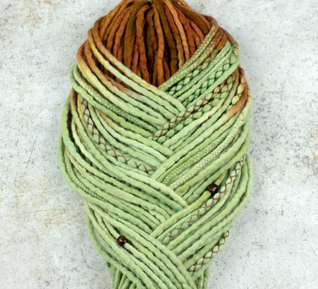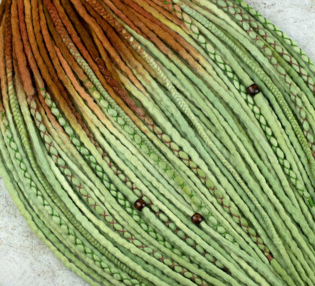 Wool dreadlocks are a unique and fashionable way of self-expression! Dreadlock extensions made of natural materials are soft, durable and easy to maintain.