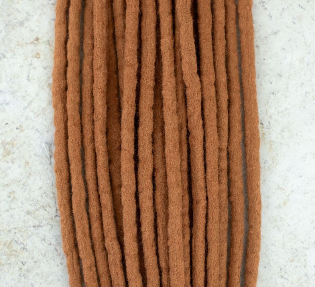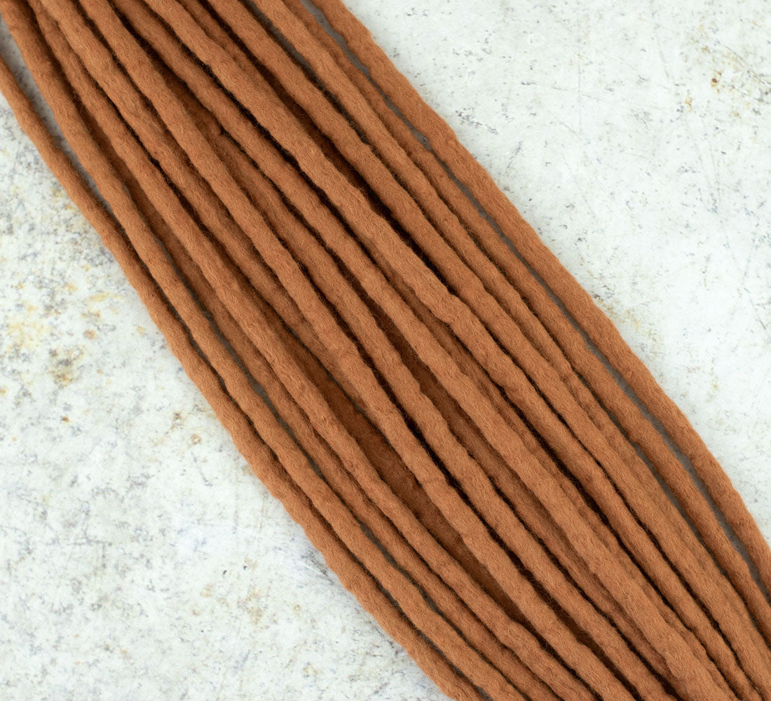 0.2-0.27 inches (5-7 mm) The boholucydreads are pencil thin or slightly thinner to be comfy. Handmade wool dreadlocks guarantee an authentic look as they vary slightly in thickness and length.