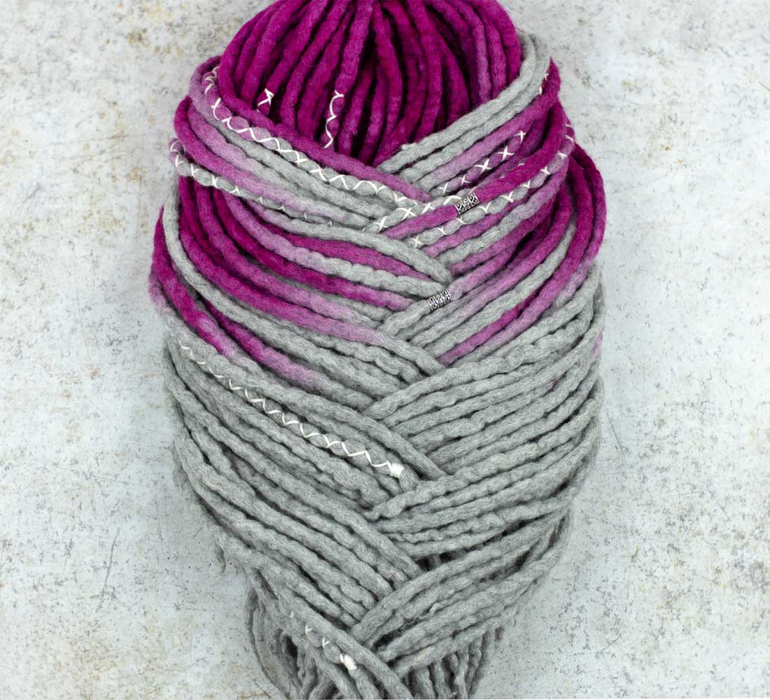 We use high quality mulesing free merino wool for dreads. The dreadlocks are decorated with cotton yarn. We make the dreads with wet felting technique and dye by hand.