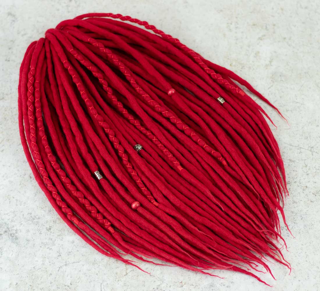 Poppy red wool dreadlock extensions