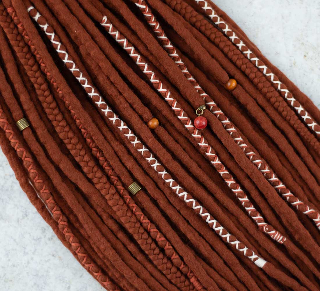 • Wool dreads are light, incredibly soft and comfortable to wear. You can have any color hair you imagine without having to dye it. You can try new lengths and styles. And if you have a pair of skillful hands, you can even install them for yourself - but you can also ask for some help from a friend or a professional.