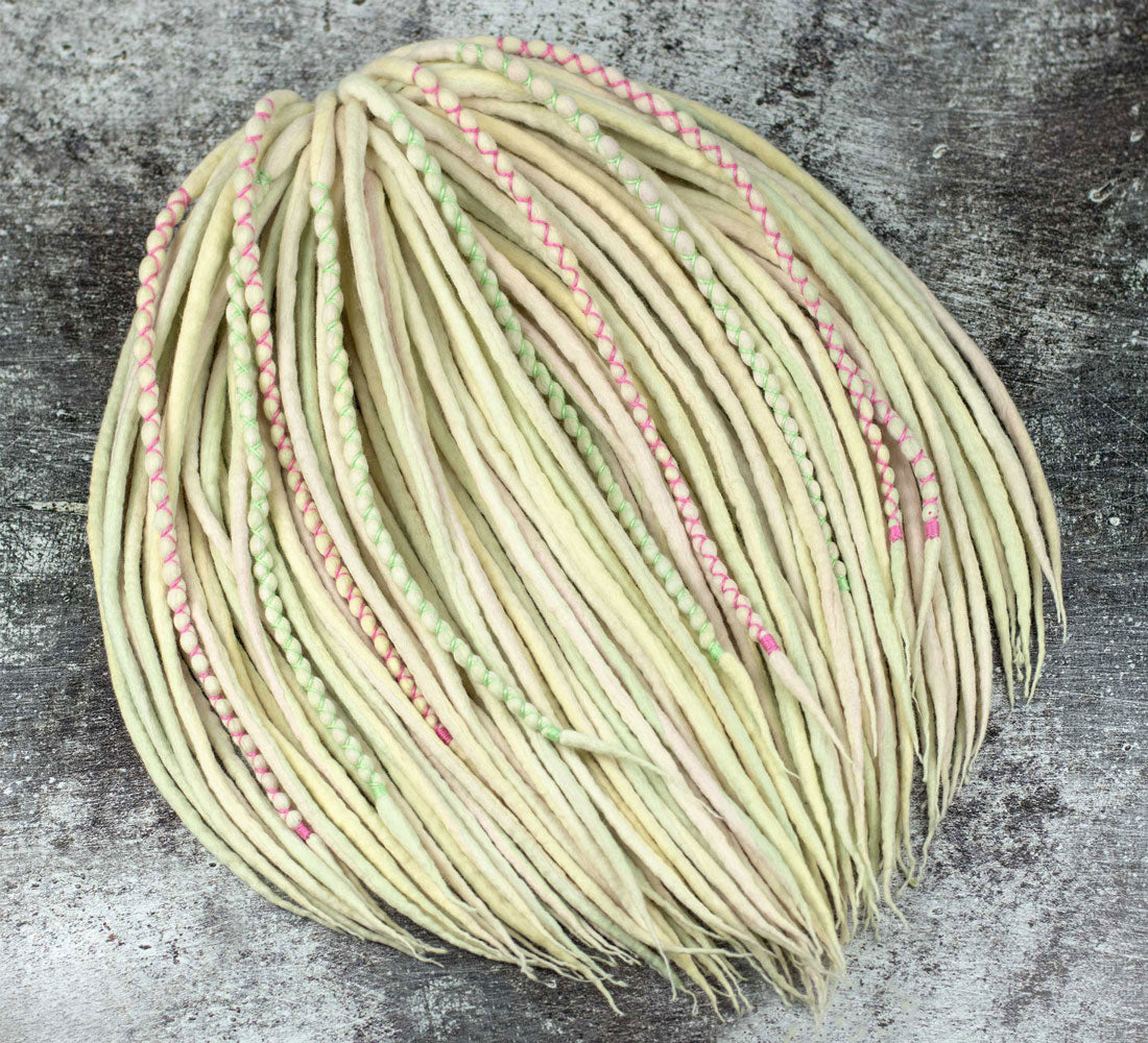 Wool dreadlocks are a unique and fashionable way of self-expression! Dreadlock extensions made of natural materials are soft, durable and easy to maintain.